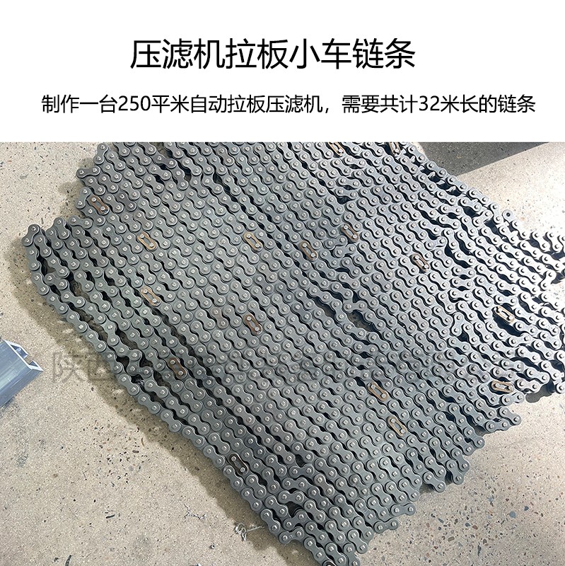 一臺(tái)250平米自動(dòng)拉板廂式壓濾機(jī),需要32米鏈條。工2根,長(zhǎng)度均為16米。